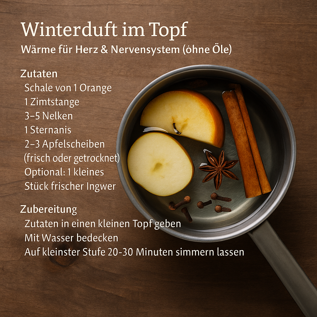 Mini-Impuls: Stell dir heute 10 Minuten âDuft-Zeitâ ein: Topf aufsetzen, tief ausatmen, ankommen.